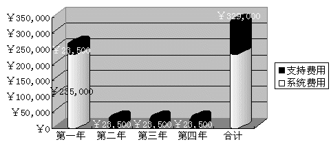 2) 語音合成投入費用 科大訊飛公司語音合成技術以及硬件設備的折舊期為四年,而就經過大量統(tǒng)計所得到的數(shù)據(jù)證明,采用語音技術后的一個72線的IVR系統(tǒng),大約可以完成一個中型的呼叫中心(配備100座席人員)所能提供的60%的業(yè)務。下圖為采用訊飛語音合成技術建設這樣的IVR系統(tǒng)的投入。