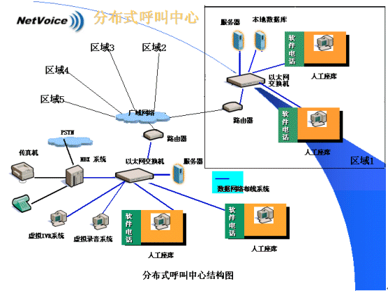 由于代理技能差異、語言差異、呼叫量的差異,以及客戶中心客戶所在地的變化及每個客戶對各自所擁有的用戶資料的保密性需求,分布式呼叫中心往往更適合各類企業(yè)的實際。分布式呼叫中心的建立,意味著需要在多個分中心之間進行統(tǒng)一的呼叫控制及語音與同步數(shù)據(jù)轉(zhuǎn)移。NBX網(wǎng)絡(luò)交換機的引入,兩網(wǎng)合一的特性使分布式呼叫中心的建立成為了一件非常容易的事情。呼叫中心可以擴展到多個位于不同地域的局域網(wǎng)上,通過路由選擇可以自動地把呼叫( 話音)和數(shù)據(jù)從一個地點轉(zhuǎn)到另一個地點中心,因為語音數(shù)據(jù)通過同一網(wǎng)絡(luò),語音和數(shù)據(jù)同步轉(zhuǎn)移是很自然的。由于數(shù)據(jù)和語音全部通過以太網(wǎng)傳輸,所以不用支付昂貴的長途話費,降低了企業(yè)及客戶的開銷,同時由于各用戶可將各自的客戶資料保存在各分中心,這樣不僅大大降低了呼叫中心對數(shù)據(jù)庫的維護管理工作,也節(jié)約了設(shè)備投入及運營成本。