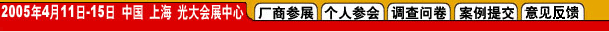 展覽大廳開放時間:2005年4月13日1:30pm —— 4月15日 03:30pm 注:以上日程內容,將根據(jù)參展廠商提交資料的進展情況隨時更新,敬請留意。