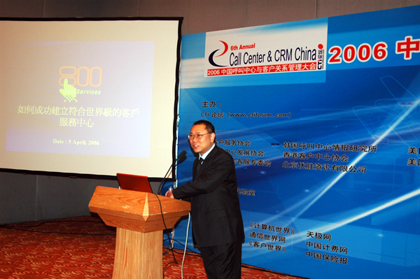 。。2006年4月3日至5日,2006中國呼叫中心與客戶關系管理大會在北京國際會議中心隆重召開,以下是4月5日上午專題演講的相關圖片報道: