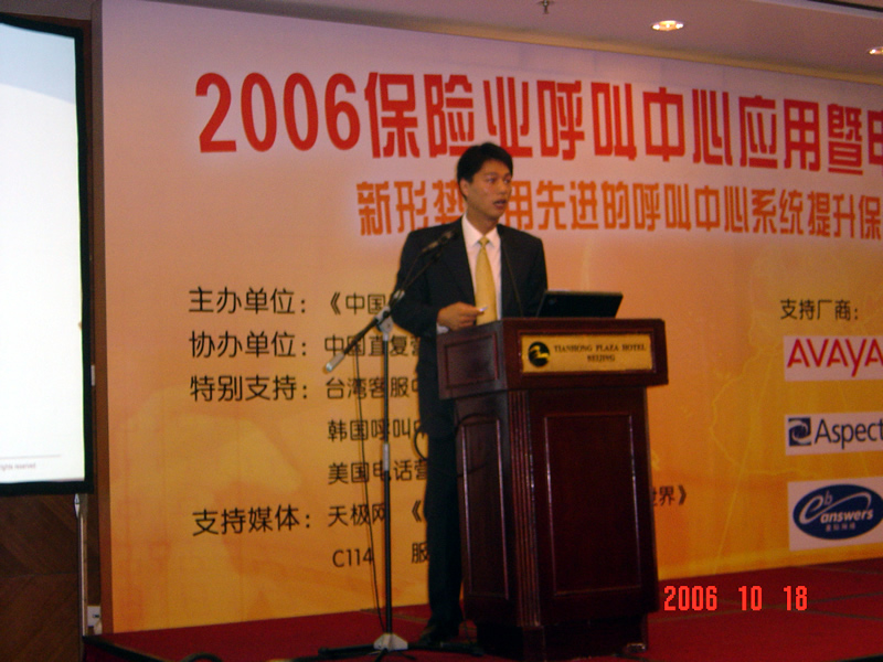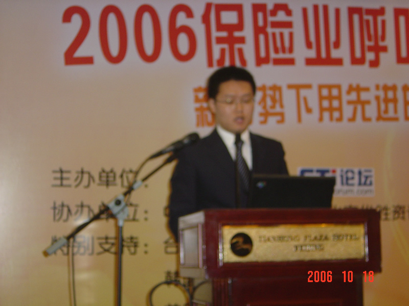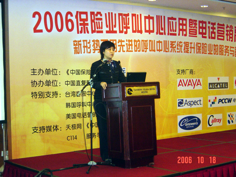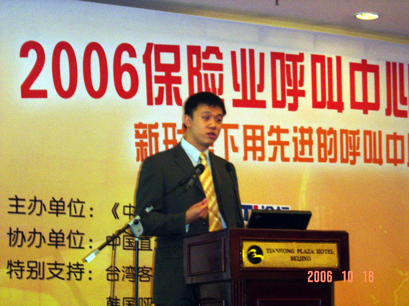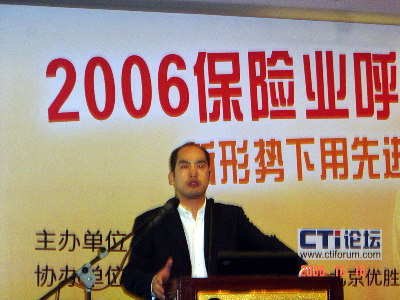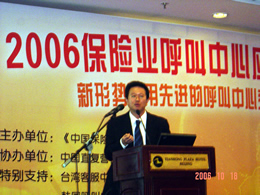 。。2006年10月18日,2006保險(xiǎn)業(yè)呼叫中心應(yīng)用暨電話營(yíng)銷高峰研討會(huì)在北京天鴻科園大酒店隆重召開,以下是大會(huì)主題演講的相關(guān)圖片報(bào)道: