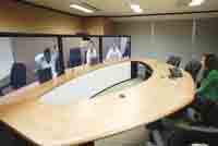 10月24日,在思科公司位于香港灣仔鷹君大廈的一間會議室,包括思科CEO錢伯斯在內的六名高管已經“坐”在橢圓型的會議桌一側。“Hi!”隨著錢伯斯的一聲招呼,會議室內的人這才發(fā)現,正在講話的“錢伯斯”是在三塊連接起來的等離子屏幕上,而此刻他真實的位置是在思科位于美國硅谷的總部。65英寸的1080P高清晰屏幕上,錢伯斯等人的影像如真人大小,加上三塊屏幕被設計成會議桌的另外一半,讓人誤以為錢伯斯真的來到了香港。