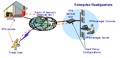 在本方案中,VPN設(shè)備選用Avaya公司的VPN系列網(wǎng)關(guān)產(chǎn)品,網(wǎng)絡(luò)中心使用VSU-2000實(shí)現(xiàn)高速的數(shù)據(jù)交換以滿足需要。VPN設(shè)備和移動(dòng)用戶的管理采用VPNManager和VPNRemote軟件來(lái)完成。VPNManager能夠?qū)崿F(xiàn)對(duì)整個(gè)VPN網(wǎng)絡(luò)進(jìn)行管理,滿足用戶認(rèn)證、加密策略的制定和修改等等重要工作。VPNRemote安裝在移動(dòng)用戶的計(jì)算機(jī)上,為用戶提供在任何地點(diǎn)只需接入任意一個(gè)ISP即可建立VPN連接的功能,充分滿足移動(dòng)用戶的的需要。企業(yè)網(wǎng)絡(luò)中心不再需要建立撥入服務(wù)系統(tǒng)為遠(yuǎn)程用戶提供撥入服務(wù)。