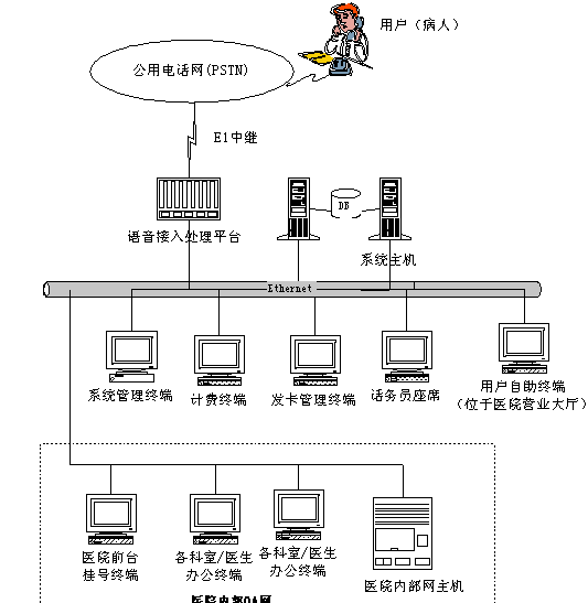 3、 系統(tǒng)需要跟醫(yī)院的人工掛號終端和自助掛號終端聯(lián)網(wǎng),電話掛號、自助掛號和醫(yī)院人工掛號三者必須結(jié)合起來,進行統(tǒng)一排隊。其中自助掛號和人工掛號的排隊時間以手工輸入電腦的時間為準(zhǔn),電話掛號以電話輸入時間為準(zhǔn)。