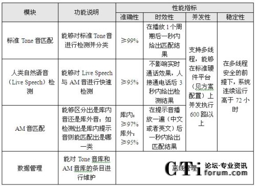 圖中,Tone音匹配采用模式匹配方法,可以實現(xiàn)對振鈴音,忙音,空號,不可達(dá)音等100多種標(biāo)準(zhǔn)提示音的識別。AM(Answering Machine)音匹配主要負(fù)責(zé)識別傳真機(jī)、自動答錄機(jī)等機(jī)器語音,同樣采用模式匹配方法,將收到的語音與標(biāo)準(zhǔn)樣本庫進(jìn)行比對。人類自然語音檢測的功能主要通過人真實聲音的檢測,來判斷是否需要進(jìn)行語音匹配。