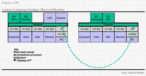今天,由于業(yè)內(nèi)各企業(yè)普遍明白了控制價(jià)值鏈中操作平臺和應(yīng)用平臺的重要性,因此靠壟斷本身來贏利容易受到全行業(yè)的抵制,微軟的策略是在操作平臺和應(yīng)用平臺上形成壟斷后,靠應(yīng)用來贏利,這樣大大增加了贏利的隱蔽性,業(yè)界比較容易接受。