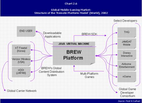 當(dāng)然,企業(yè)對未來的把握也往往和自己對這個(gè)行業(yè)的熟悉程度分不開的,所以微軟今天的策略大都帶有強(qiáng)烈的IT和互聯(lián)網(wǎng)的味道。而移動市場當(dāng)中的新貴高通公司,就想當(dāng)年的微軟一樣,偶然性地掌握了CDMA的核心技術(shù),同時(shí)由于移動通信在全球的興起,成了移動通信價(jià)值鏈中的重要環(huán)節(jié)之一。但是,由于所有的競爭廠家都希望自己擁有核心技術(shù),技術(shù)上略落后,但更開放的GSM得到了更多市場的青睞。為了保持自己的地位,高通采取了與微軟相似的地位,拋出了名為BREW的移動應(yīng)用平臺。與微軟在寬帶和廣電的策略相同,高通在移動通信領(lǐng)域提供從技術(shù)、服務(wù)到外包運(yùn)營等全套解決方案。在移動游戲領(lǐng)域,高通為美國第一大無線運(yùn)營商Verizon搭建了基于BREW的游戲業(yè)務(wù)平臺,同時(shí)負(fù)責(zé)這一平臺的運(yùn)圍和與游戲提供商的合作及管理、促銷等工作。與Verizon的合作是獨(dú)家的,建立在利潤分成的基礎(chǔ)上,到現(xiàn)在為止,這種模式是移動游戲領(lǐng)域最成功的合作之一?梢哉f,高通把自己變成了半個(gè)運(yùn)營商,同時(shí)由于擁有客戶資源和合作模式提供,高通的地位有望超過Verizon。