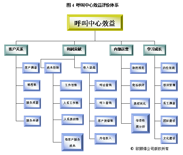根據(jù)年度重點(diǎn)工作及目標(biāo),我們就可以設(shè)計(jì)關(guān)鍵措施來使其實(shí)現(xiàn)。通常一項(xiàng)關(guān)鍵措施可以有助于幾個(gè)目標(biāo)的達(dá)成。如建立培訓(xùn)體系,可以使得在崗培訓(xùn)、上崗培訓(xùn)、多技能訓(xùn)練以及崗位技能達(dá)標(biāo)率有所提升,而體現(xiàn)在業(yè)務(wù)上的效果則是服務(wù)質(zhì)量的提升、呼出營(yíng)銷收入增加和客戶挽留率提高。