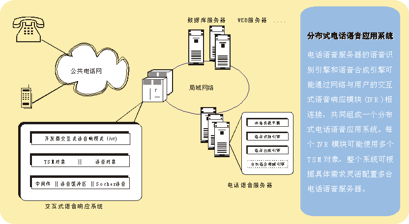 。 支持客戶服務(wù)器模式:可以將執(zhí)行傳統(tǒng)的電話語音流程的應(yīng)用系統(tǒng)作為客戶機(jī),使用專門的服務(wù)器提供語音識別的計算。