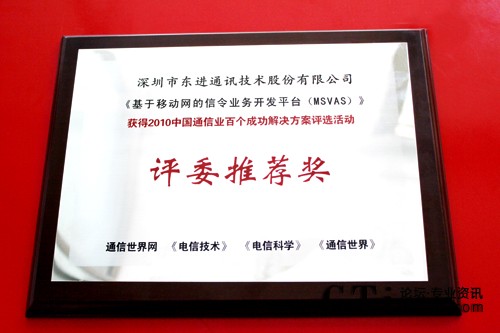 從2010年7月起評選進(jìn)入征集階段,經(jīng)過長達(dá)3個月的層層篩選,最終百個成功解決方案出爐,并由多家主流媒體公示。東進(jìn)技術(shù)“基于移動網(wǎng)的信令業(yè)務(wù)開發(fā)平臺(MSVAS)”解決方案憑借出眾的實用經(jīng)濟(jì)性、安全可靠性、靈活性和成熟性,經(jīng)過兩個月網(wǎng)絡(luò)初選,和近百位運(yùn)營商層面專業(yè)人士組成的組委會技術(shù)終選后獲此殊榮。