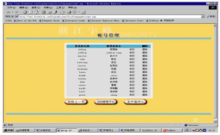 帳號(hào)系統(tǒng)主要是為適應(yīng)一個(gè)分銷商內(nèi)部會(huì)有多個(gè)不同等級(jí)的人使用這個(gè)系統(tǒng)。對(duì)于分銷商而言,它可以建立多個(gè)帳號(hào),并為每個(gè)帳號(hào)分配不同的權(quán)限,以及每個(gè)帳號(hào)可以對(duì)應(yīng)管理不同下屬企業(yè)(參看圖5和圖6)。還可以為不同的帳號(hào)提供不同的進(jìn)入頁面,使得用戶使用更加方便。