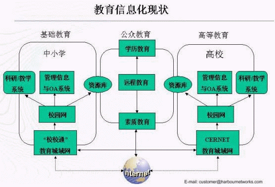 目前國內(nèi)教育界主要分為高等教育、公眾教育、基礎教育三大塊,三個部分的建設應用情況不盡相同。同方網(wǎng)絡對于每一個部分都提出了有針對性的解決方案,為加速教育界信息化助一臂之力。