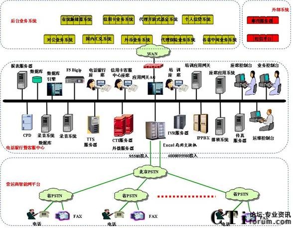 中國郵政儲(chǔ)蓄銀行電話銀行暨信用卡客服中心系統(tǒng)的物理結(jié)構(gòu)如下圖所示: