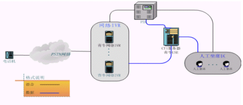 青牛IVR集群方案將原來(lái)放在PBX后面的IVR"前移",PBX的LINK只有和坐席相關(guān)的信息,大量的和IVR相關(guān)的呼叫信息被剝離出去,由青牛網(wǎng)絡(luò)IVR直接自行處理。根據(jù)統(tǒng)計(jì),自動(dòng)業(yè)務(wù)的呼叫量在整個(gè)客服中心呼叫量中占大多數(shù),當(dāng)呼叫量越大的時(shí)候,該方案的優(yōu)勢(shì)就越明顯。