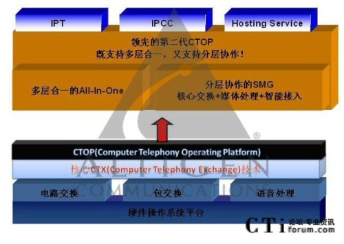  通過CTOP平臺為多種不同的應(yīng)用提供系統(tǒng)平臺,包括IP PBX、IP呼叫中心以及Hosting Service,且核心功能無需外掛其他服務(wù)器。同時也提供了非常強(qiáng)大與其他應(yīng)用的集成能力,拓展了核心平臺的應(yīng)用范圍。