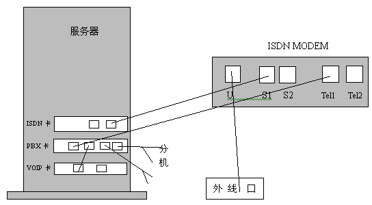 目前,很多的客戶采用的上網(wǎng)方式是ISDN接入,我們來說明一下如何用ISDN與NBX3000系統(tǒng)進(jìn)行連接。