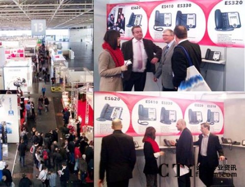 CTI論壇(ctiforum)3月24日消息(記者 潘婷婷):2011年3月,一年一度的國際信息及通信技術(shù)博覽會(CeBIT)在德國漢諾威展覽中心舉行。廣州億景通信技術(shù)有限公司在展會中展出了自主研發(fā)和生產(chǎn)的SayHi系列:ES 企業(yè)級IP話機、DS 雙模IP話機、WS 無線IP話機、HS 酒店IP話機等融合通信產(chǎn)品。在眾多的通信廠商中,億景通信產(chǎn)品贏得眾多海外參會人員的青瞇。