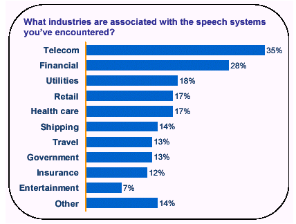 語音服務系統(tǒng)已成為社會主流并已侵蝕到各個行業(yè)領(lǐng)域。從最經(jīng)常使用語音服務的電信、金融服務行業(yè)到公用事業(yè)、醫(yī)療業(yè)、運輸業(yè)、政府部門及旅游業(yè),語音服務已是無處不在,家常便飯。