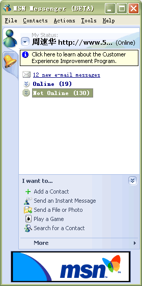 5月26日,微軟最新即時(shí)通訊軟件MSN Messenger的最新版本MSN Messenger Beta 6.0.0250被提前遭遇外泄,使得大家提前領(lǐng)略到了微軟最新的即時(shí)通訊軟件風(fēng)采。這也是微軟.net計(jì)劃中的一個(gè)重要組成部分,也讓我們看到了一些微軟“格林威治(Greenwich)”的影子!案窳滞(Greenwich)”――是微軟基于.net戰(zhàn)略的能夠?qū)崟r(shí)進(jìn)行通信等的服務(wù)器軟件的開發(fā)代號(hào)。由于未對(duì)外正式發(fā)布,此次公開的是MSN