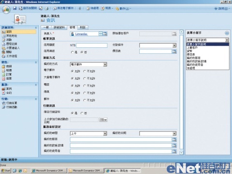 Dynamics CRM 4.0的聯(lián)絡(luò)人,除了基本信息之外,還可以針對(duì)偏好的聯(lián)絡(luò)方式、活動(dòng)記錄、次要聯(lián)絡(luò)人或者商機(jī)管理等,儲(chǔ)存更詳細(xì)的記錄。