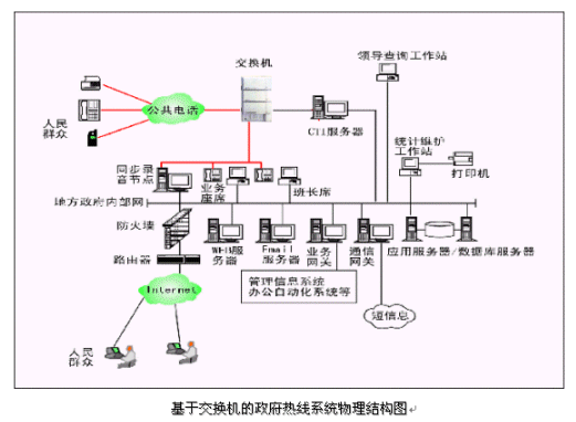 市民利用電話撥打某一特服號碼(如12345)進(jìn)入政府熱線系統(tǒng),12345政府熱線系統(tǒng)依托地方政府各類業(yè)務(wù)技術(shù)支持系統(tǒng)和網(wǎng)絡(luò)系統(tǒng),通過人工受理或自動語音服務(wù)等方式全天24小時不間斷地為人民群眾提供各種服務(wù);形成了對外服務(wù)于百姓的無形窗口,對內(nèi)管理、分析、決策系統(tǒng)相結(jié)合的呼叫中心。