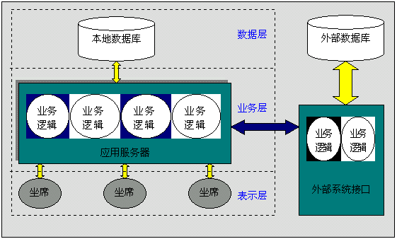 系統(tǒng)軟件體系結(jié)構(gòu)采用C/AS/DS三層結(jié)構(gòu),如下圖,客戶端通過應(yīng)用服務(wù)器上的業(yè)務(wù)邏輯訪問所需數(shù)據(jù)源來實現(xiàn)相應(yīng)的業(yè)務(wù)功能。在應(yīng)用服務(wù)器軟件設(shè)計開發(fā)中,采用面向?qū)ο蟮姆椒,將業(yè)務(wù)邏輯封裝成類,使系統(tǒng)更具靈活性和擴(kuò)展性。