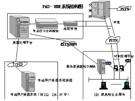 為了滿足各類社會應急與服務呼叫系統(tǒng)對電話用戶資料的需要,同時又解決電信部門對用戶資料數據庫的保密和安全要求,我公司成功開發(fā)了PAS-UDE(User Data Extract)電話信息回送系統(tǒng),并成為110聯網接口設備開發(fā)生產入網廠商。