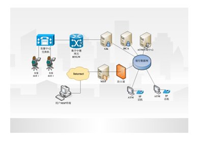 利用上海農(nóng)行現(xiàn)有的VPN (Virtual Private Network),在ATM自助終端和各個網(wǎng)點內(nèi)實現(xiàn)VOIP互聯(lián),包括呼入和呼出,并且在非人職守的終端實現(xiàn)熱線方式。