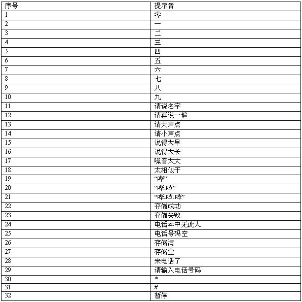 1-人名訓(xùn)練 2-人名識別 3-語音電話本 4-語音合成 5-控制功能 6-調(diào)試 7-DTMF 8-音樂 9-實(shí)時(shí)錄音/回放 10-來電播報(bào)