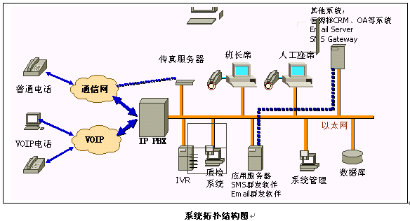 《恒源祥(集團)有限公司呼叫中心》采用聲軟網(wǎng)絡技術公司的《XIPCC呼叫中心系統(tǒng)》平臺,主要由NBX IP交換機、IVR系統(tǒng)、應用服務器、數(shù)據(jù)庫服務器(共用CRM的數(shù)據(jù)庫服務器)、全程錄音系統(tǒng)和PC終端座席系統(tǒng)等硬件設備和系統(tǒng)應用軟件組成。它以電話服務為主要服務方式、結(jié)合計算機信息系統(tǒng)的資料數(shù)據(jù),為客戶提供全方位的服務,包括:信息查詢、客戶咨詢、調(diào)查反饋、產(chǎn)品導購、投訴、舉報、產(chǎn)品和活動的發(fā)布以及客戶關懷等功能。