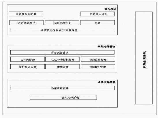 另外從CTI技術(shù)和呼叫中心的角度來(lái)看,也應(yīng)當(dāng)實(shí)現(xiàn)適當(dāng)線路數(shù)的自動(dòng)語(yǔ)音應(yīng)答(IVR)功能,呼叫/業(yè)務(wù)處理數(shù)據(jù)的統(tǒng)計(jì)功能,電話錄音留言功能,對(duì)主叫用戶和被叫信息號(hào)碼的有效性進(jìn)行檢查的功能,系統(tǒng)管理維護(hù)功能等才能構(gòu)成一個(gè)完整的呼叫中心系統(tǒng)。