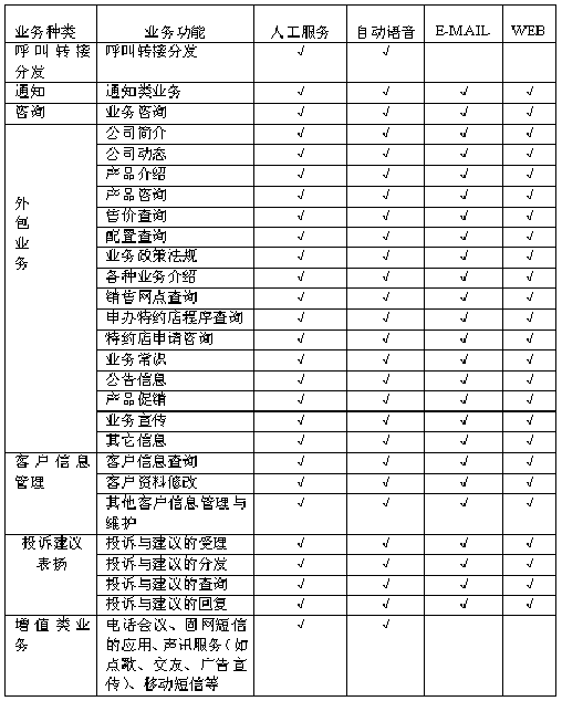 通知類業(yè)務:對某些特定的對象通過自動呼出或人工呼出進行通知,實現(xiàn)政策法規(guī)、專題的通知,方式可以是電話、傳真、電子郵件、短消息、網(wǎng)站等。