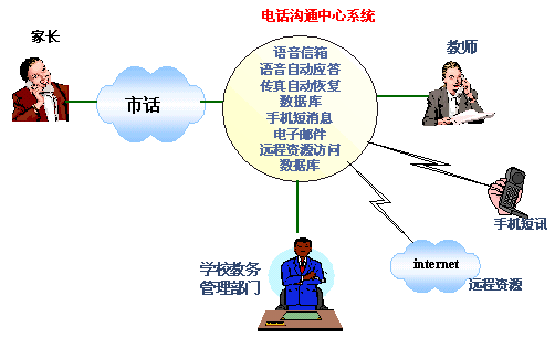 為此,很多學校都建立了自己的網(wǎng)站來作為對外宣傳和溝通的窗口,同時,不少學校還建立了校園網(wǎng),但僅僅通過INTERNET來獲取相應的學生信息和學校信息是不夠的,畢竟不是每個家長都上網(wǎng)的,就算上網(wǎng)也只是偶爾,不能達到和學校經(jīng)常溝通的效果,尤其是在不很發(fā)達的地區(qū)這種現(xiàn)象尤為明顯。因此學校與家長的溝通必須建立在一種十分普及的通訊方式基礎上,而當前最為普及的通訊方式莫過于電話了。