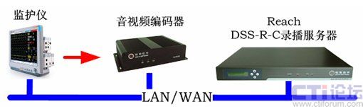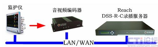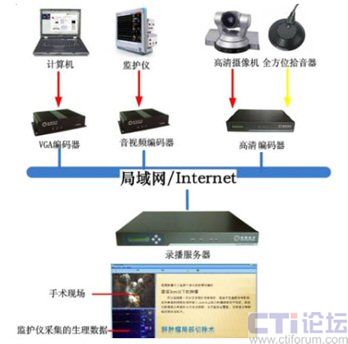 銳取遠(yuǎn)程醫(yī)療系統(tǒng)前端視音頻編碼器將采集到的手術(shù)室監(jiān)護(hù)儀的信號(hào)進(jìn)行實(shí)時(shí)編碼和壓縮,通過(guò)網(wǎng)絡(luò)傳送給多媒體錄播系統(tǒng)遠(yuǎn)程醫(yī)療系統(tǒng)后臺(tái)服務(wù)器上。