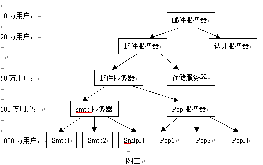 這種結(jié)構(gòu)所支持的用戶量有比較大的靈活性。用這種結(jié)構(gòu)的系統(tǒng)可以支持到幾百萬以上的用戶。最為著名的Hotmail站點(diǎn)所采用的就是多臺(tái)機(jī)器分布式并行操作的方式,目前其用戶數(shù)已經(jīng)達(dá)到近3000萬。通過多機(jī)集群技術(shù),使運(yùn)營商能夠在處理海量郵件的發(fā)送、管理和存儲(chǔ)。根據(jù)負(fù)載流量管理,運(yùn)營商可以掌握系統(tǒng)的負(fù)荷狀況,并根據(jù)業(yè)務(wù)發(fā)展需求來添加服務(wù)器。這種系統(tǒng)可以支持上百萬乃至上千萬的用戶。