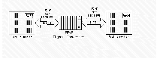 因?yàn)樾帕顦?biāo)準(zhǔn)不同,部分國(guó)外通信設(shè)備無法與國(guó)內(nèi)通訊網(wǎng)互通互連,SPAS-2000可編程交換機(jī)接口豐富,支持信令標(biāo)準(zhǔn)全面,成本低廉,可以為中國(guó)一號(hào)信令、七號(hào)信令、ISDN PRI(E1/T1)、環(huán)路信令、接入網(wǎng)V5信令等標(biāo)準(zhǔn)之間的轉(zhuǎn)換提供靈活完整的解決方案,同時(shí)當(dāng)輸入和輸出的中繼接口不同時(shí),其語(yǔ)音編碼可能不同,可利用多功能信號(hào)音板實(shí)現(xiàn)語(yǔ)音編碼的轉(zhuǎn)換(例如可以實(shí)現(xiàn)A LAW和U LAW之間的語(yǔ)音互轉(zhuǎn))。連接圖見圖1: