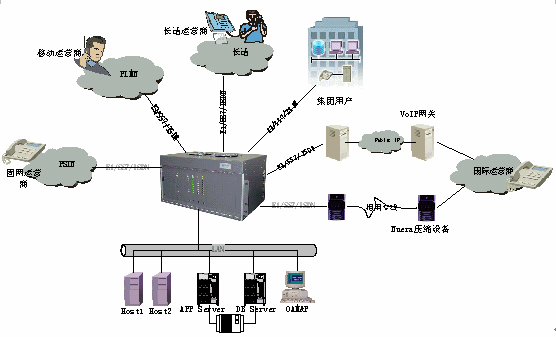 該系統(tǒng)是基于開放式可編程交換平臺,以開放式、模塊化的設(shè)計思想,采用業(yè)界最先進的開放式可編程交換技術(shù)、信令網(wǎng)關(guān)技術(shù)、媒體網(wǎng)關(guān)技術(shù)、IVR技術(shù)和網(wǎng)絡(luò)技術(shù),專門為電信運營商設(shè)計的能無縫融合多種網(wǎng)絡(luò)、在同一平臺上靈活提供多種電信增值業(yè)務(wù)的運營級綜合業(yè)務(wù)平臺系統(tǒng)。它融入了眾多電信業(yè)務(wù)轉(zhuǎn)售商、IP電話運營商、虛擬電信運營商和增值電信服務(wù)商的實際運營經(jīng)驗,以強大的功能和實用性幫助新興的中、小型電信運營商快速進入國際、國內(nèi)長途電話話務(wù)轉(zhuǎn)售、預(yù)付費電話卡、后付費電話、自動呼叫轉(zhuǎn)移等市場,提高效率并獲取最大的收益和回報。