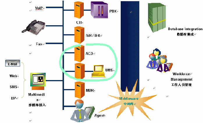 ·采用CSTA接口和外置式ACD自動(dòng)呼叫分配引擎,整個(gè)平臺(tái)是硬件無(wú)關(guān)的,可以支持目前主流的PBX和語(yǔ)音板卡。