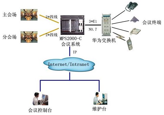 系統(tǒng)容量:90方全交互會(huì)議,4路四線。
