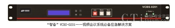在視頻會議召開的過程中,主會場視頻終端等設(shè)備如果發(fā)生故障時其音視頻信號會發(fā)生中斷,由此將會使整個視頻會議無法繼續(xù)進行,傳統(tǒng)的解決辦法是配置第二套視頻終端作為冷備份,當(dāng)主設(shè)備發(fā)生中斷時由系統(tǒng)維護人員以手工方式切換至備用設(shè)備。北京真視通自主研發(fā)的智備(產(chǎn)品型號:VCBS-0201),解決了主會場主備終端的自動、快速、無縫切換的問題。