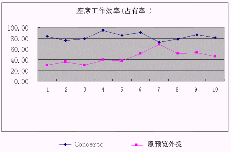 下圖可以看出使用原預(yù)覽外撥和采用Concerto預(yù)測(cè)外撥系統(tǒng)后座席占有率的比較: