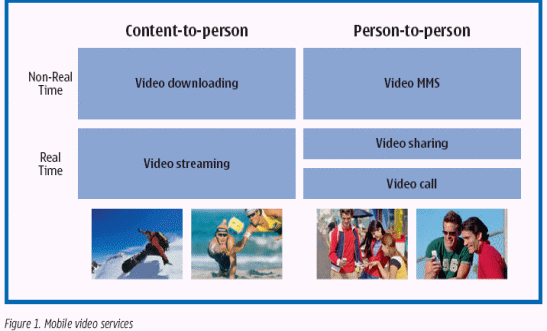 許多移動(dòng)運(yùn)營(yíng)商已經(jīng)引領(lǐng)并推出移動(dòng)視頻服務(wù),它正因視頻流和實(shí)時(shí)P-to-P高質(zhì)量通話的增加,逐步發(fā)展出更多的商機(jī)。ARC組織估計(jì),在2004年里,全世界的移動(dòng)視頻用戶數(shù)量將增至2400萬,而到2008年,將是10倍的增長(zhǎng),達(dá)到2億4700萬。(摘自:ARC組織發(fā)表的《2003年-2008年,世界移動(dòng)視頻市場(chǎng)分析和戰(zhàn)略前景》)今天,大約有60個(gè)運(yùn)營(yíng)商是依據(jù)發(fā)布新聞和其它公共信息資源來推廣移動(dòng)視頻服務(wù),圖1展示了移動(dòng)視頻服務(wù)的概念框架。