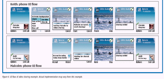 在最近一次諾基亞委托進(jìn)行的IP多媒體研究中顯示,消費(fèi)者喜歡增加了視頻共享的視頻電話,有趣的手機(jī)外觀被看作是非常重要的,而視頻共享也被認(rèn)為是非常有用的,被看作是基于視頻短信的MMS的一個(gè)明顯的進(jìn)步。消費(fèi)者喜歡去共享的時(shí)刻是:例如在假期里,購(gòu)物、舉家外出旅行,或者是一個(gè)周末的夜晚。通過視頻共享來展現(xiàn)你的位置及同行人員,可以確保人身的安全。同樣,視頻共享技術(shù)也可以應(yīng)用于商業(yè)領(lǐng)域,如財(cái)產(chǎn)狀態(tài)監(jiān)視和遠(yuǎn)程檢查野外工作等。