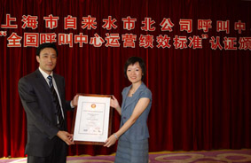 2004年9月16日,上海自來水市北有限公司正式通過《全國呼叫中心運(yùn)營績效標(biāo)準(zhǔn)》(CCCS-PQ)認(rèn)證(四星級客戶服務(wù)中心) ,成為中國公用事業(yè)第一家,也是上海地區(qū)首家通過此認(rèn)證的呼叫中心。