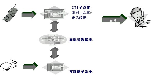 Internet子模塊相對(duì)比較簡(jiǎn)單,可以采用目前主流的網(wǎng)絡(luò)通訊錄服務(wù)方式進(jìn)行服務(wù);而為了更好服務(wù)用戶,CTI子模塊需要采用先進(jìn)的語(yǔ)音合成和語(yǔ)音識(shí)別技術(shù)。