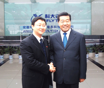 12月19日上午,中共中央政治局常委、全國(guó)政協(xié)主席賈慶林一行在安徽省委書記郭金龍、省長(zhǎng)王金山等省市領(lǐng)導(dǎo)陪同下來到國(guó)家863計(jì)劃成果產(chǎn)業(yè)化基地——科大訊飛公司視察,賈慶林主席對(duì)科大訊飛在中文語音技術(shù)和產(chǎn)業(yè)化方面的成績(jī)給予充分肯定。上午8時(shí)30分,賈主席一行抵達(dá)訊飛語音產(chǎn)業(yè)大樓。中國(guó)科技大學(xué)黨委書記郭傳杰、科大訊飛總裁劉慶峰博士、基地總工陳濤及基地工作人員熱烈歡迎賈主席的到來。