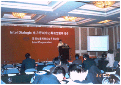 2002年3月27日,佳訊飛鴻公司參加了由美國Intel公司通訊業(yè)務事業(yè)部和深圳市意科特實業(yè)有限公司聯(lián)合主辦的“Intel Dialogic電力呼叫中心解決方案研討會”。公司技術總監(jiān)王曉暉在會上做了題為《電力客服系統(tǒng)與AnyTouch平臺》的報告,并針對電力行業(yè)的特點,向與會者介紹了基于Intel Dialogic語音卡系列的呼叫中心解決方案以及可無縫升級為交換機和Internet呼叫中心解決方案。佳訊公司還向與會代表演示了基于公司自主研發(fā)的AnyTouch平臺的HDSI120路高密度語音卡呼叫中心系統(tǒng)。報告和演示得到了會議主辦單位和與會代表的關注。