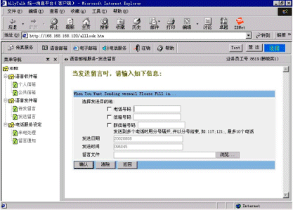3、 Internet檢索:用戶用Web瀏覽器通過(guò)Internet實(shí)現(xiàn)播放、刪除、傳送、轉(zhuǎn)發(fā)、存取各自的語(yǔ)音郵件消息。