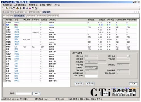 系統(tǒng)提供話費的預(yù)算控制和預(yù)存控制(押金管理)功能,用戶可以選擇使用其中一種或都不使用,當(dāng)電話費用達到設(shè)定的費用金額,系統(tǒng)按照設(shè)定的處理方式(降低分機撥打電話的等級)進行。