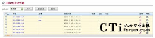 通過Web方式的客戶端收取用戶發(fā)來的短信,可以按日期時間、主題、內(nèi)容、主叫號碼等進行查詢和排序;將收到的短信轉(zhuǎn)發(fā)給其它個人手機或用戶群;